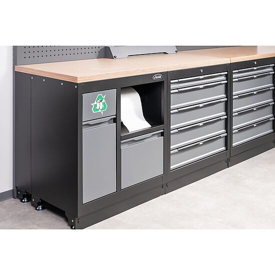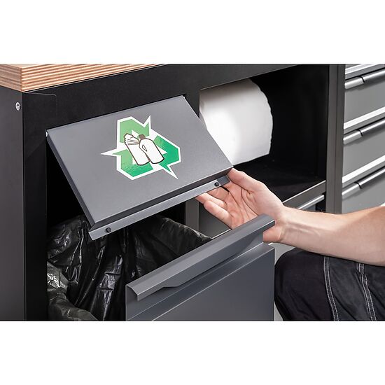 - Lixeira de 35 litros com tampa para descarte rápido de resíduos.