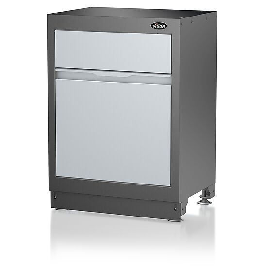 - Armário inferior com tampa para descarte rápido de resíduos.