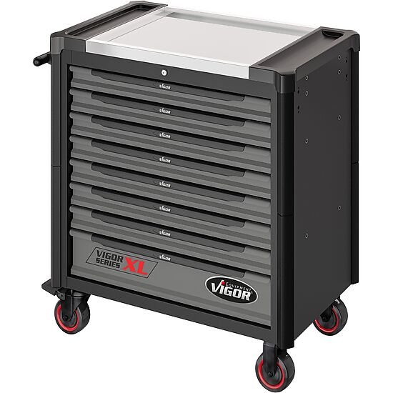 Carrinho para ferramentas com sortimento e bancada em aço inoxidável