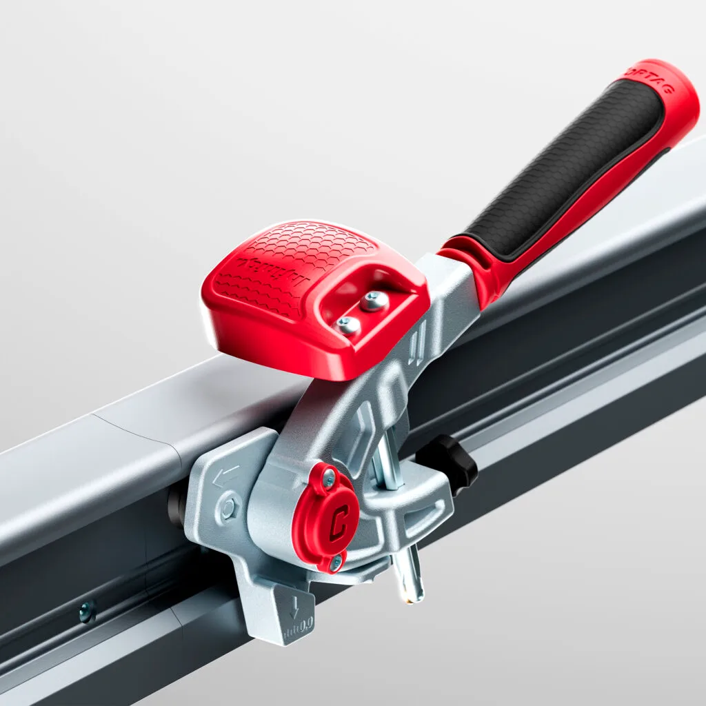 - Cortador manual desenvolvido para corte preciso de peças cerâmicas de grande formato.