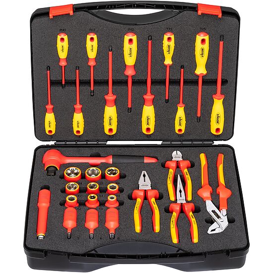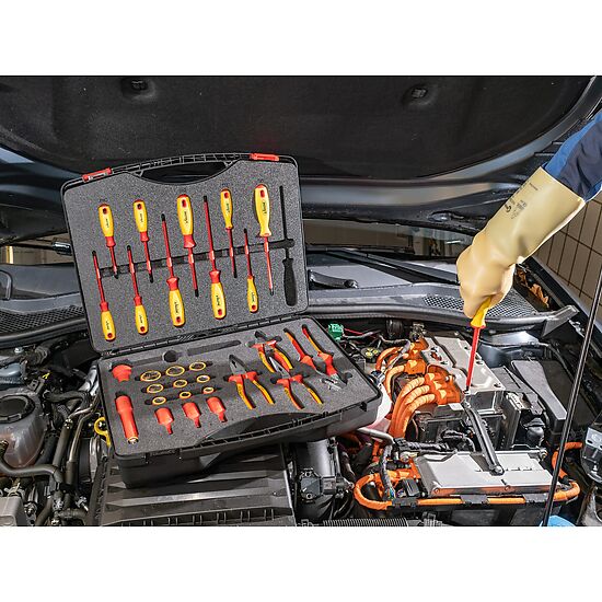 - Estojo de ferramentas compacto com todas as ferramentas necessárias para desenergizar um veículo com segurança.