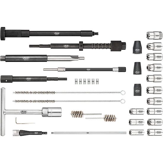 - Limpeza profissional da sede de vedação do injetor, ponta do injetor e abertura do pino.
