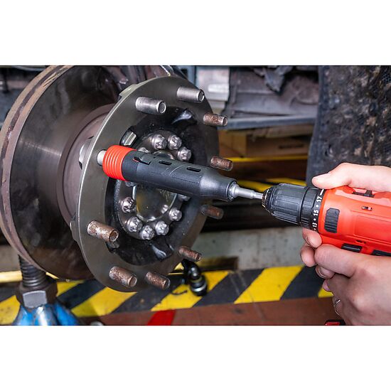 - Limpeza rápida e eficaz de parafusos e prisioneiros de roda.