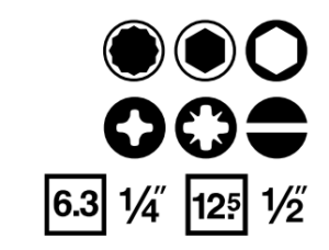 Encaixe (Drive) 1/4″ · 1/2″