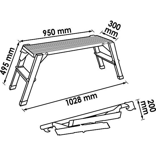 • Dimensões (C x L x A): 950 x 300 x 495 mm