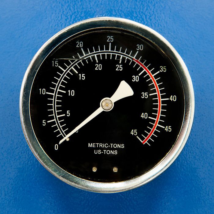 Prensa hidropneumática profissional com capacidade de 30 toneladas (30.000 kg), indicada para operações intensivas de prensagem, extração e montagem em oficinas e ambientes industriais.