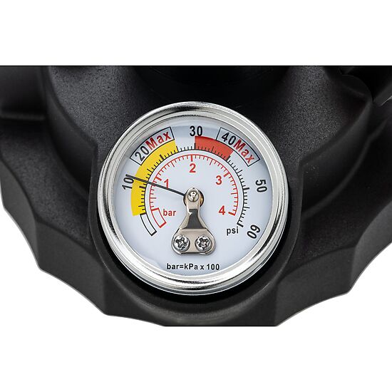 - Manómetro com faixa de medição 0 – 2 bar.