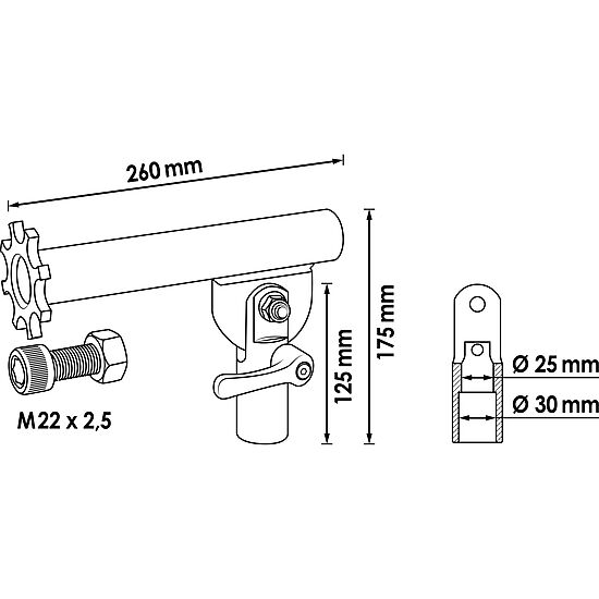 - Diâmetros internos do suporte: 25 mm e 30 mm.