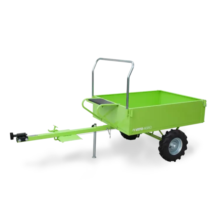 Atrelado para motoenxadas e motocultivadores, com estrutura resistente e funcionalidade basculante. Ideal para transporte de cargas até 400 kg, com segurança e estabilidade.