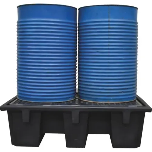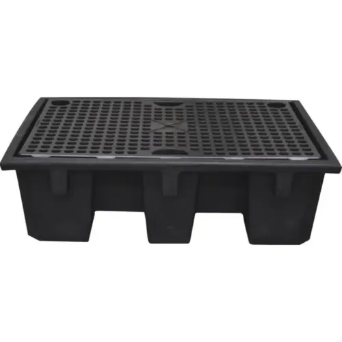 BACIA RETENÇÃO 240L 2 TAMBORES DRAKKAR é uma solução prática e segura para o armazenamento e manuseamento de produtos químicos. Fabricada em polietileno reciclado a 100%, inclui grelha e é compatível com palete europeia 1200×800 mm. Dispõe de passagem para garfos em dois lados, permitindo fácil movimentação. A sua capacidade de retenção é de 240 litros, suportando uma carga máxima de 650 kg. O produto é fornecido sem tambores.