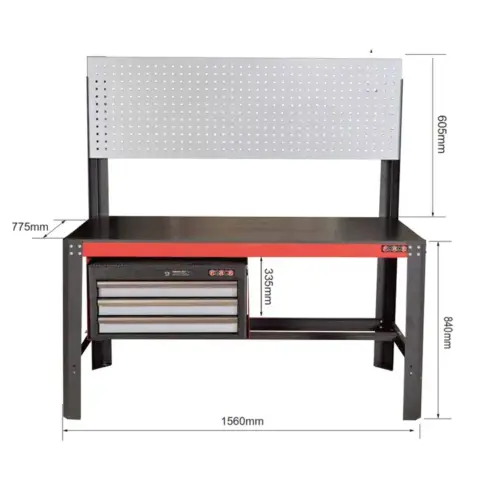 A bancada de trabalho FORCE é ideal para oficinas, garagens e espaços de bricolage. Equipada com uma caixa integrada de 3 gavetas metálicas e painel traseiro perfurado, oferece organização e funcionalidade no armazenamento de ferramentas e acessórios. A estrutura robusta garante durabilidade e estabilidade durante o uso.