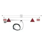 BARRA SINALIZAÇÃO REBOQUES LED 1.4–2.1M JBM — barra de sinalização ajustável com tecnologia LED e homologação E4-7R-0218756, garantindo total conformidade com as normas europeias de segurança rodoviária. Possui comprimento regulável de 1,4 a 2,1 metros e cabo de 6 metros, proporcionando instalação prática e compatibilidade com diversos tipos de reboques e atrelados. Fabricada pela marca JBM, oferece alta visibilidade, baixo consumo energético e grande durabilidade.