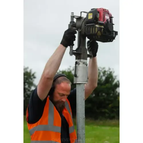 Com uma frequência de 1720 BPM e energia de impacto de 36 Joules, garante que os postes sejam cravados de forma eficiente em qualquer terreno. Ideal para uso em zonas inclinadas ou de difícil acesso, proporciona menos esforço físico em comparação com métodos tradicionais.