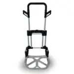 . Construído em alumínio, este carrinho é dobrável e equipado com rodas sólidas de 170 mm, garantindo praticidade e durabilidade. Com capacidade máxima de 90 kg e um peso leve de 4,7 kg, é ideal para diversas aplicações de transporte