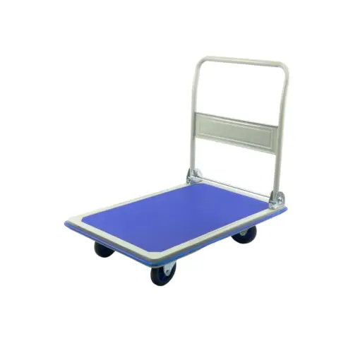 Carro de armazém resistente e versátil, ideal para transporte de cargas até 300 kg. Equipado com rodas giratórias para facilitar a mobilidade e uma plataforma robusta, é uma excelente opção para armazéns, oficinas e indústrias.