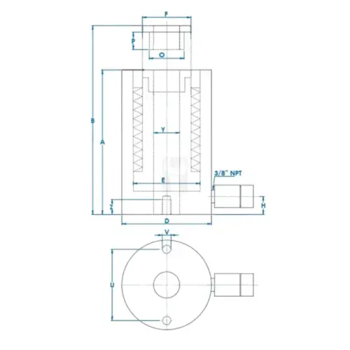 Cilindro de pistão oco de simples efeito com retorno por mola, concebido para operações de empurrar e puxar. Ideal para o tensionamento de cabos e pernos, bem como para a extração de casquilhos e rolamentos. Possui tratamento de nitruração no pistão, tubo central e cabeça guia, o que evita a corrosão e aumenta a resistência ao desgaste. A cabeça guia interior impede a saída do pistão e suporta toda a força do cilindro. Equipado com silletas intercambiáveis (lisa, roscada ou maciça) e ligação rápida fê…