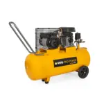 Compressor com Correias com uma capacidade do depósito de 100L, tem uma potência do motor de 2,5hp/1,9kW e uma velocidade de rotação do compressor de 1400rpm.