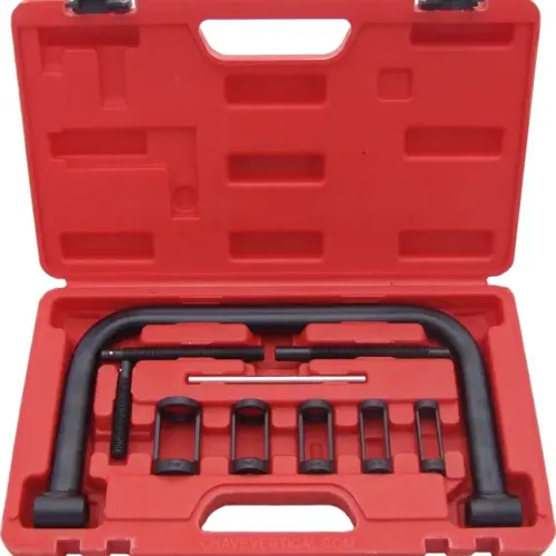O conjunto inclui 5 adaptadores que possibilitam o encaixe correto na mola da válvula, assegurando uma compressão segura e controlada. A ferramenta foi projetada para oferecer facilidade de utilização, durabilidade e compatibilidade com uma ampla gama de motores.