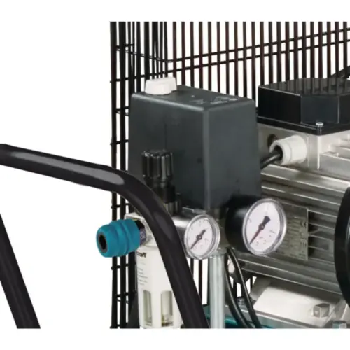 - Recetor de ar equipado com válvula de segurança, manómetro do recetor e válvula de drenagem de condensados