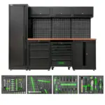 - Conjunto modular concebido para organizar ferramentas em ambiente de oficina e garagem, permitindo acesso rápido e seguro aos utensílios e reduzindo perdas e desarrumação.