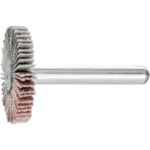 Disco lamelar montado de óxido de alumínio, diâmetro 30×5 mm com haste de 6 mm e grão A80. Adequado para desbaste fino e acabamento de superfícies metálicas. A disposição radial das lamelas permite adaptação perfeita aos contornos da peça, garantindo elevado desempenho e uniformidade de acabamento. Classificado segundo ISO 3919 como “disco lamelar com eixo”.