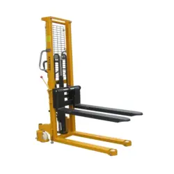 - Stacker manual hidráulico com leme e pedal para facilitar a elevação e o esforço do operador.