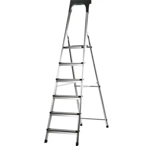 Os degraus antiderrapantes em alumínio garantem segurança, e o tabuleiro porta-ferramentas integrado mantém as ferramentas sempre à mão.