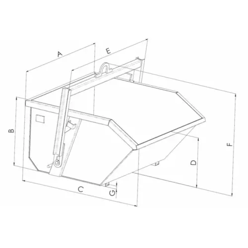 Gamela basculante com estrutura reforçada para elevação e despejo de entulho em obra. Possui tara de 178 kg e capacidade de 1000 litros, com CMU de 1800 kg, adequada a materiais com densidade até 1800 kg/m³. Inclui asa de elevação própria para ligação direta ao gancho de grua, garantindo segurança e estabilidade no basculamento.