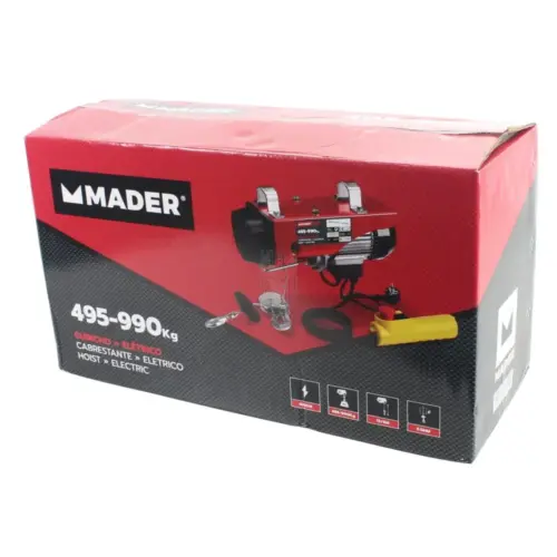 Explore a eficiência do Guincho B-990 da Mader com uma capacidade impressionante de 495/990kg. Projetado para elevações de 6 a 12 metros, este guindaste robusto oferece resistência superior, suportando mais de 2500kg. Com alimentação de 230V, é a escolha ideal para tarefas de elevação exigentes.