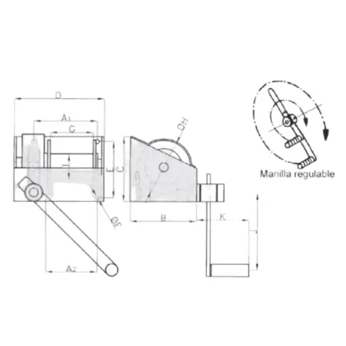 Guincho manual de parede para elevação e descida controladas por manivela. O sistema de travamento por parafuso sem-fim aumenta a segurança durante a operação. Estrutura robusta para uso profissional em manutenção e oficina. Acabamento anticorrosão para maior durabilidade em ambientes exigentes. Capacidade nominal de 250 kg, adequada a fixação em parede.