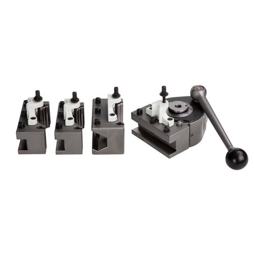 A torreta de aperto rápido garante alta precisão e praticidade no manuseio de ferramentas, com repetibilidade de 0,01 mm. Possui escala angular no suporte, até 40 configurações diferentes de ângulo e ajuste de altura através de parafuso. Conta ainda com suporte de ferramentas e suporte de ferramentas com perfil dentado retificado, proporcionando uma montagem precisa e confiável. Ideal para montagem própria.