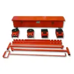 Os conjuntos são compostos por 1 peça giratória com braço e 2 fixas. As peças fixas têm furos que permitem a fixação entre elas mediante uma barra. O kit de tanquetas é composto de um jogo de 4 tanquetas capaz de mover e posicionar qualquer carga até 20, 30 ou 60 Ton, a capacidade de carga está calculada para que 2 tanquetas possam suportar a carga total em solos irregulares.