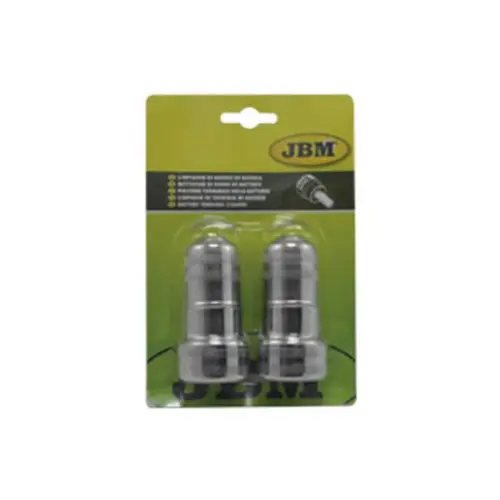 Este conjunto de limpa bornes de bateria da JBM inclui duas unidades, ideais para a manutenção e limpeza eficaz dos terminais de baterias. Ajuda a remover oxidação, ferrugem e sujidade acumulada, garantindo uma boa condução elétrica e prolongando a vida útil da bateria.