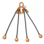 Linga de elevação com 4 ramais e corrente de grau 80 (G80) com 08 mm de diâmetro, ideal para movimentação de cargas com segurança e resistência. Cada ramal possui 3 metros de comprimento, oferecendo excelente alcance e flexibilidade em operações industriais. O conjunto inclui uma anilha tripla 08-8, quatro malhas de união vermelhas 07/8-8, quatro ganchos com lingueta de conexão direta 07/8-8, e quatro ganchos encurtadores com conexão direta 07/8-8 e três elos adicionais. Inclui placa identificativa com a capacidade de carga (WLL) clara e visível.