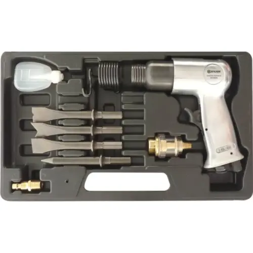 O martelo cinzel pneumático Stilker é fornecido em estojo prático com 8 peças, garantindo robustez e versatilidade para trabalhos de oficina e indústria. Compacto e eficaz, assegura um desempenho fiável em diferentes aplicações.