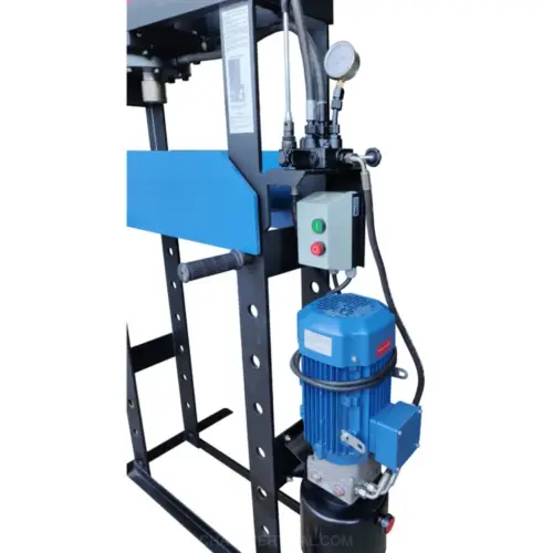 Esta prensa integra uma centralina electro-hidráulica de 2 velocidades, com velocidade de aproximação aproximada de 1300 mm/min e velocidade de trabalho de cerca de 200 mm/min, equilibrando rapidez e precisão. O pistão tem um curso de 250 mm e o hidráulico móvel facilita o posicionamento exacto sobre a zona a prensar, aumentando a flexibilidade do equipamento em diferentes aplicações.