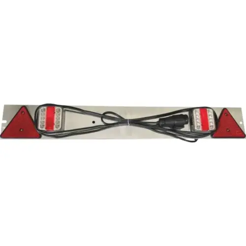 RAMPA LED TRASEIRA 1M FICHA 13 PINOS SODIFLASH — rampa de iluminação traseira com 5 funções integradas: luz de travagem, pisca, luz de posição, luz de matrícula e refletores. Equipada com ficha de 13 pinos e cabo de 4 metros (5×0,4mm²), é ideal para atrelados e bagageiras, proporcionando máxima visibilidade, segurança e durabilidade. Fabricada com tecnologia LED 12V, garante baixo consumo energético e longa vida útil. Fornecida em sachet para fácil armazenamento e transporte.
