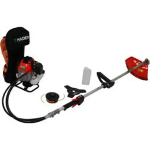 ROÇADOURA MOCHILA 42.7CC M500 MADER é uma máquina prática e potente, projetada para trabalhos de corte e manutenção de terrenos exigentes. Equipada com motor a gasolina 2 tempos com mistura a 4%, oferece uma potência de 1.25kW e 42.7cc, garantindo eficiência e robustez.