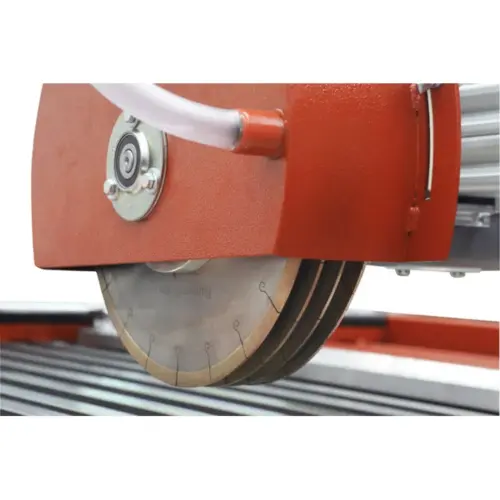 A serra de bancada RAIMONDI CM180 AUTO foi concebida para cortes de grandes dimensões em cerâmica, mármore, granito e grés porcelânico. Com motor de 3 CV (2,2 kW), realiza cortes até 120 mm de profundidade e 1800 mm de comprimento.