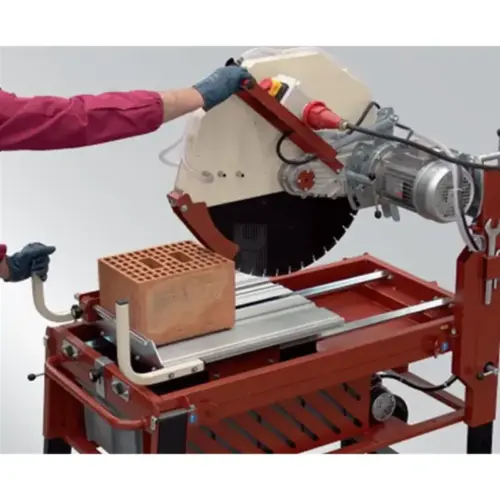 A serra de bancada RAIMONDI SHERPA foi concebida para corte de tijolos, blocos, pedra e materiais de construção de grande espessura. Disponível em versões monofásica (230V) e trifásica (400V), proporciona cortes até 250 mm de profundidade com discos de Ø500 a Ø630 mm.