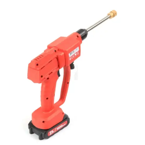 Agulheta de lavar a pressão portátil, alimentada por bateria de 21 V e 1,5 Ah, com pressão máxima de 28 bar. Indicada para limpeza de painéis solares, mobiliário de jardim e automóveis. Inclui sistema de encaixe rápido para maior facilidade de utilização.